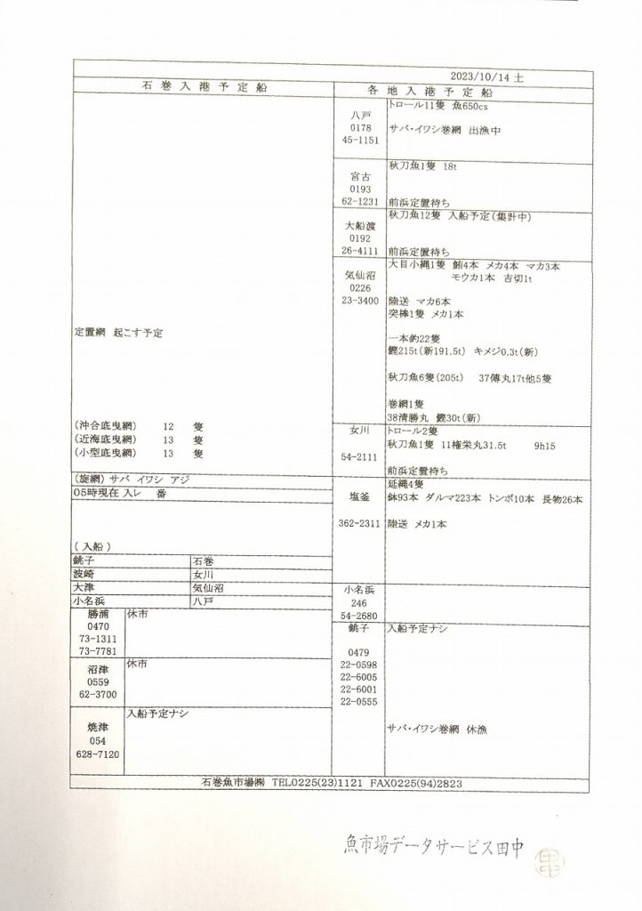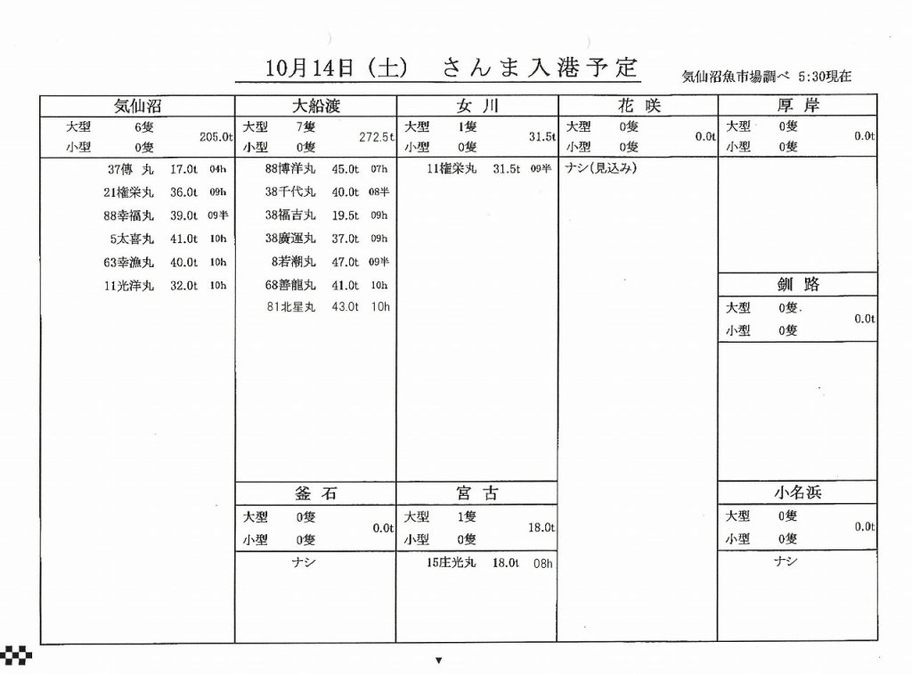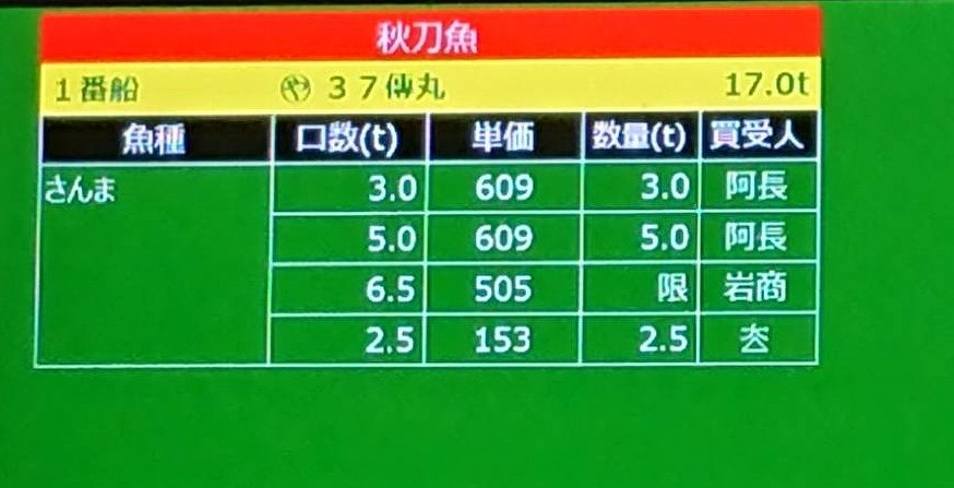 大船渡魚市場秋刀魚販売結果