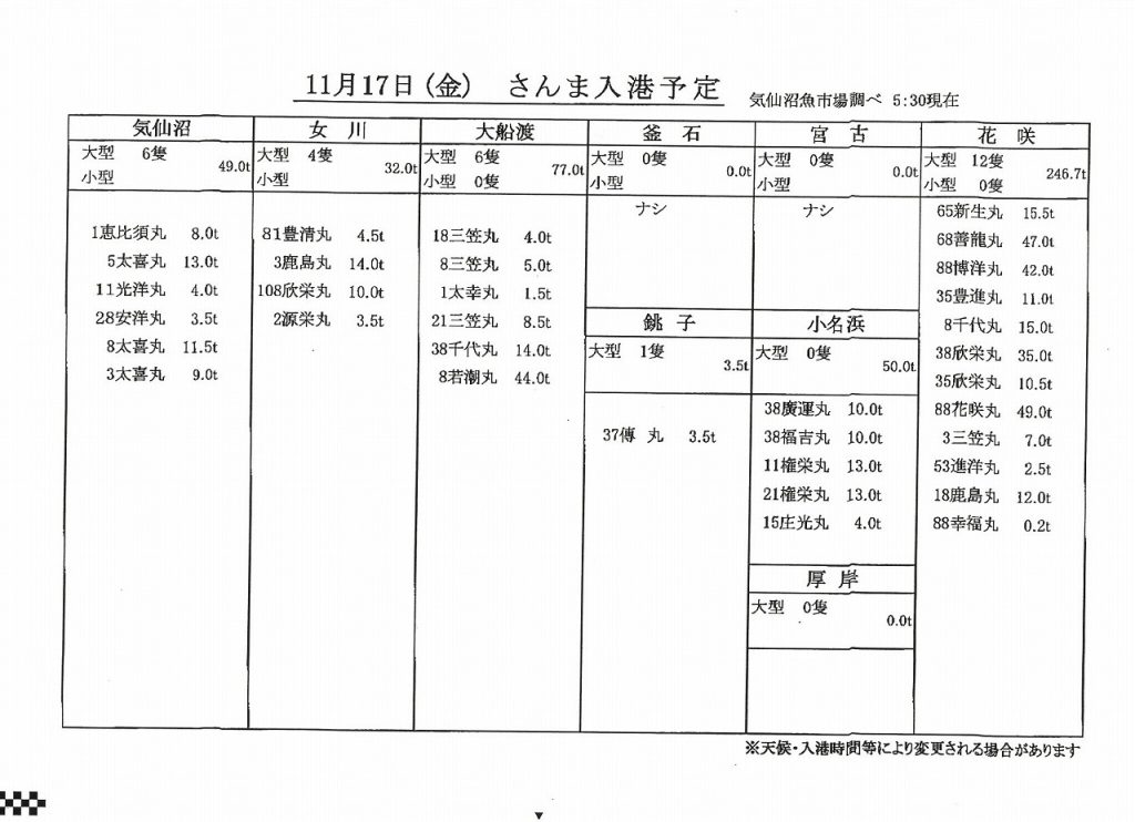 大船渡魚市場秋刀魚販売結果