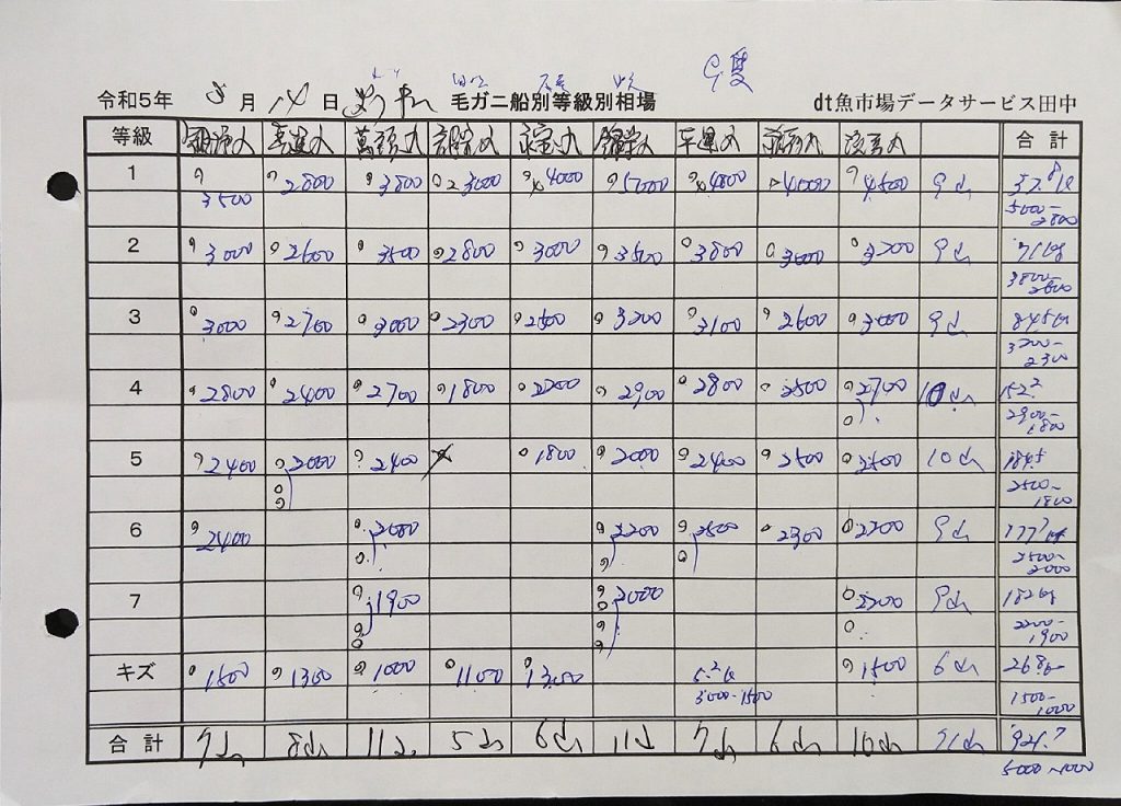 気仙沼魚市場入札結果