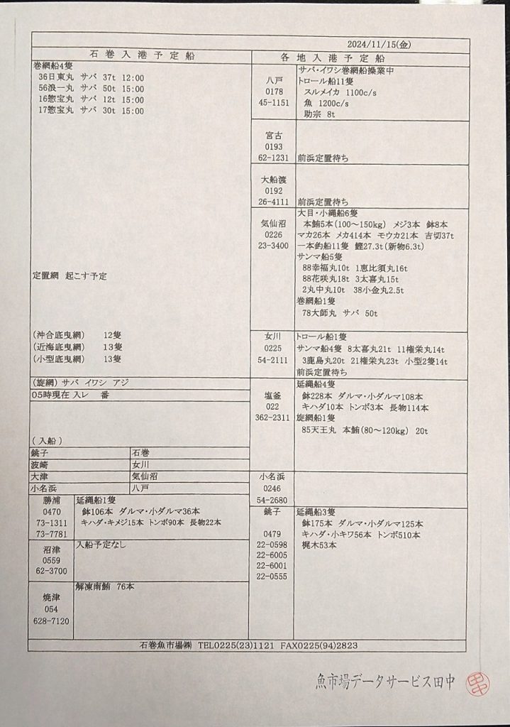 女川魚市場秋刀魚販売結果