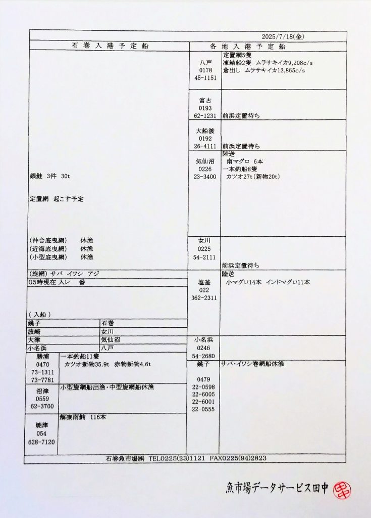魚市場データサービス田中ホームページ