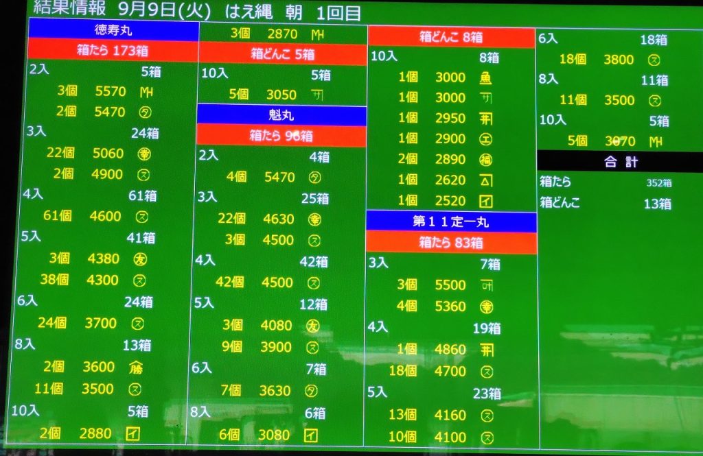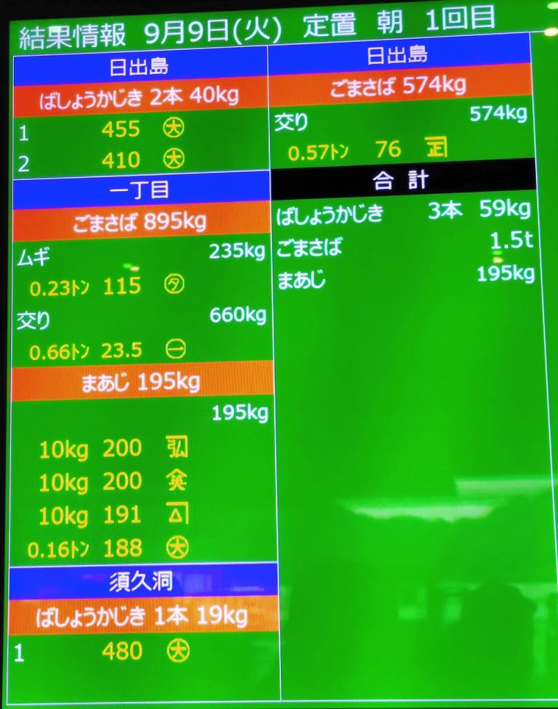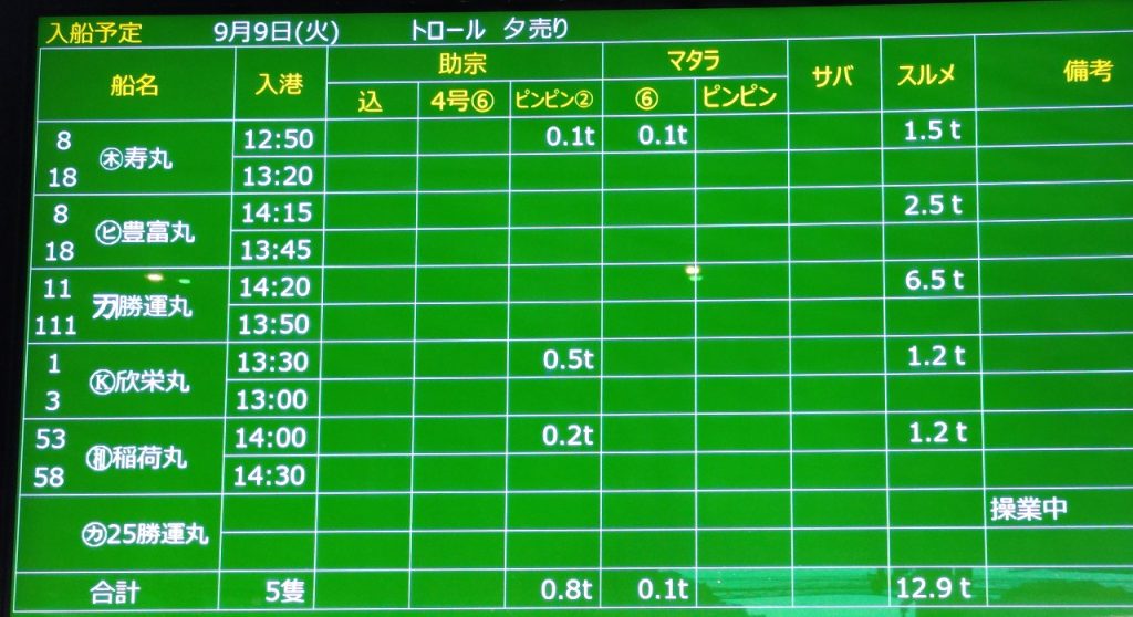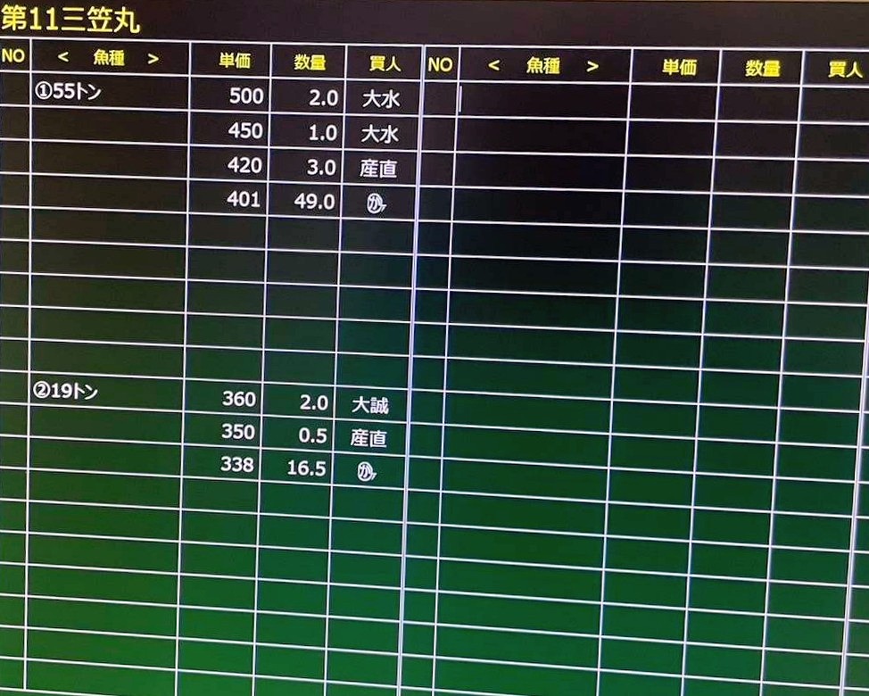 大船渡港秋刀魚船販売結果