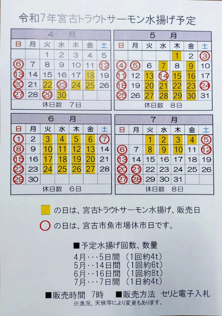 令和7年宮古トラウトサーモン水揚予定