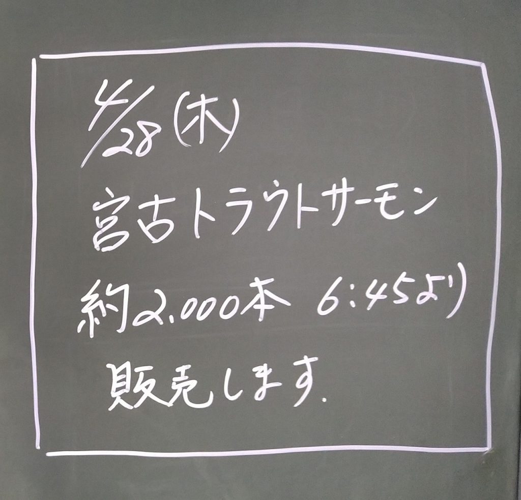 令和4年4月28日宮古トラウトサーモン今季初上場約2,000本am6:45より販売
